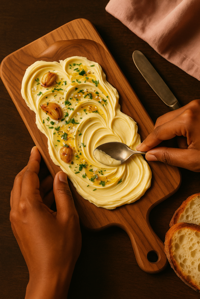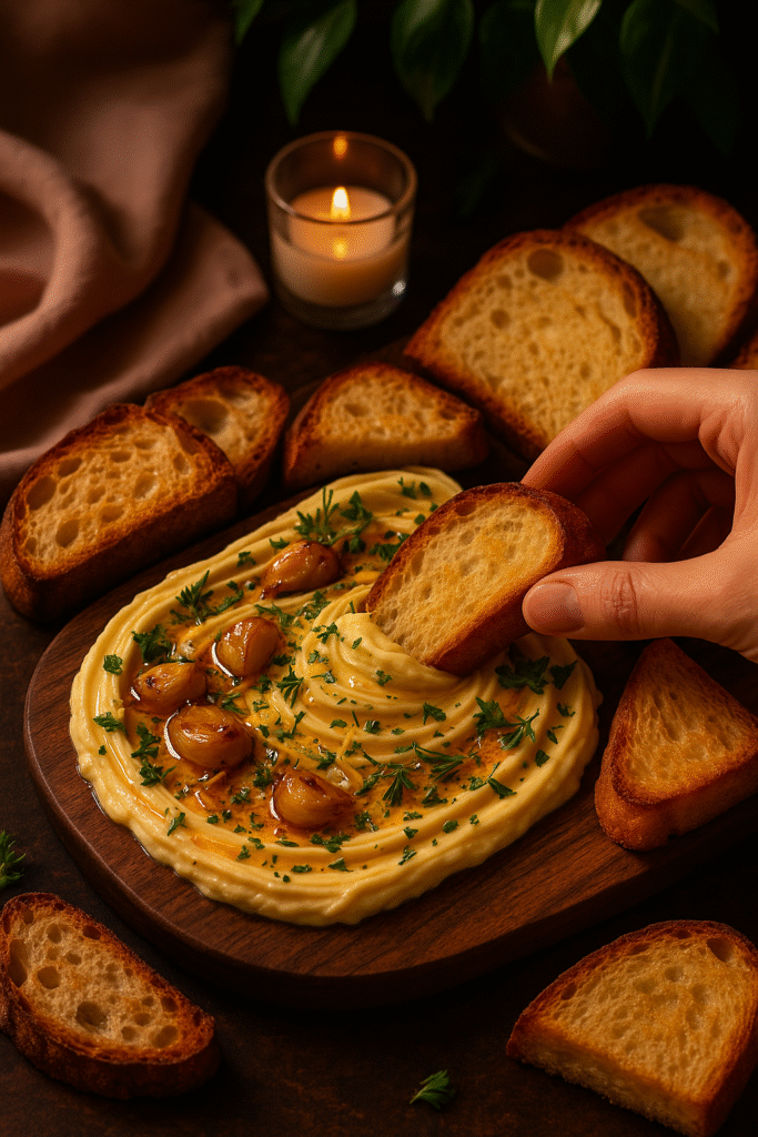 Light a candle, pour something pretty into a glass, and Invite someone you’re low-key craving to run warm bread back and forth through those swirls with you This isn’t just party food it’s how you seduce using flavor instead of words. 😈🧈🥖